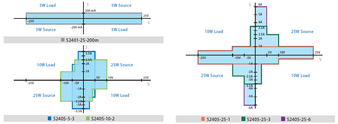 下列图示分别为52400系列电源量测单元四象限输出图示: